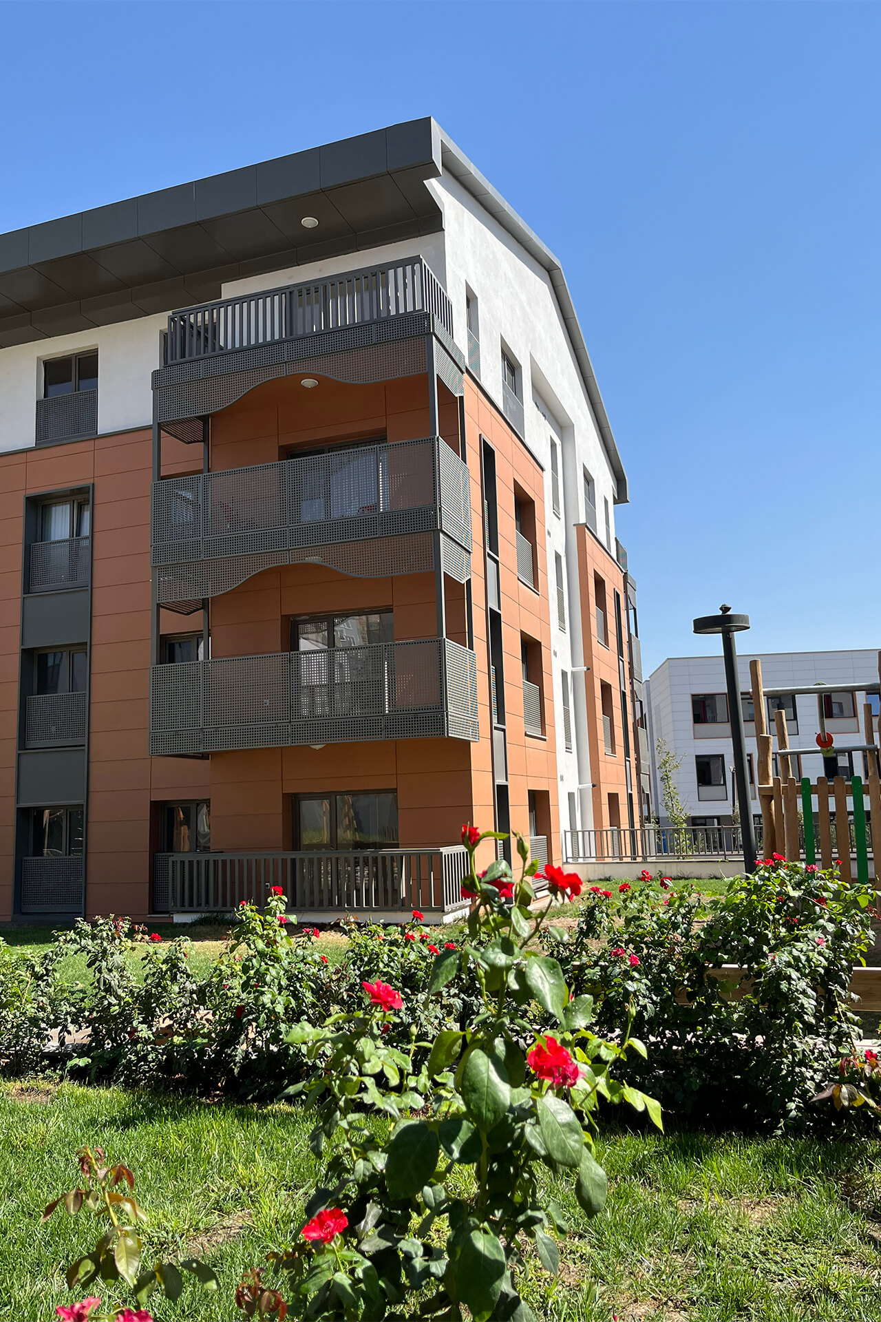In the project’s façade cladding, HekimBoard Fibercement flat sheets were preferred. The use of two to three different colors on each building gave the structures a lively and dynamic character. In addition to façades, HekimBoard flat sheets were also applied to balcony interiors, eave undersides, and window surrounds, serving as an essential detail that completes the design’s overall harmony.